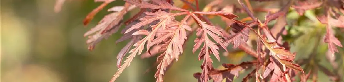 Die charakteristische, tiefgelappte Blattform von Ahornbäumen verleiht jedem Garten einen Hauch von Extravaganz. In die Art Acer palmatum reihen sich zahlreiche Sorten, die mit strauchartigen Wuchshöhen oder ungewöhnlichen Blattfärbungen locken. Eine Bereicherung für jeden Garten, der zum Träumen und Verweilen einladen will!