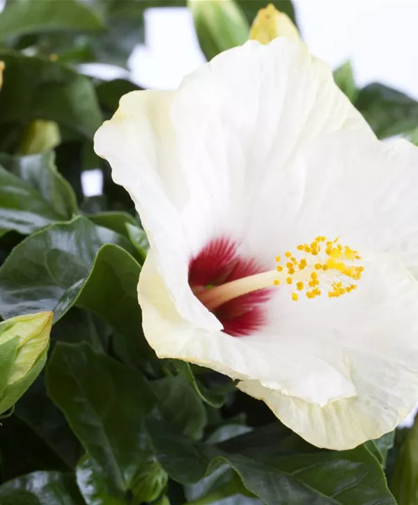 Der Chinesische Roseneibisch verzaubert durch seine zahlreichen, weißen Blüten, die von Juni bis Oktober erscheinen. Die Blüten können eine Größe von ca. - 6 bis 10 cm cm erreichen.