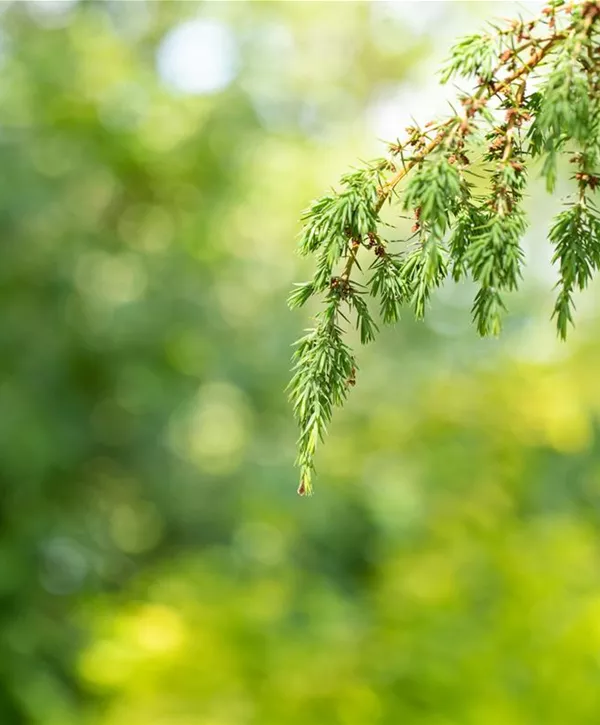 Der Wildwacholder 'Horstmann' bildet kleine, oftmals unscheinbare Blüten im Juni.