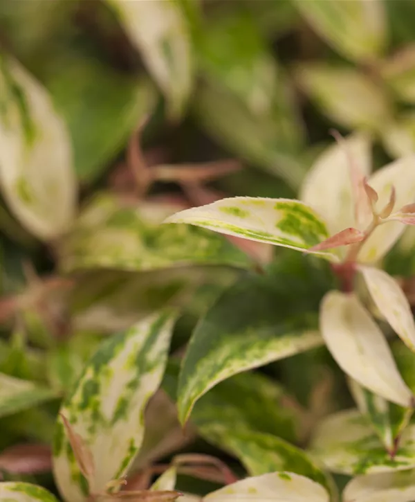 Das junge Laub dieses Zierstrauches zeigt sich in einem intensiven Rot, das jeden Blick auf sich zieht!