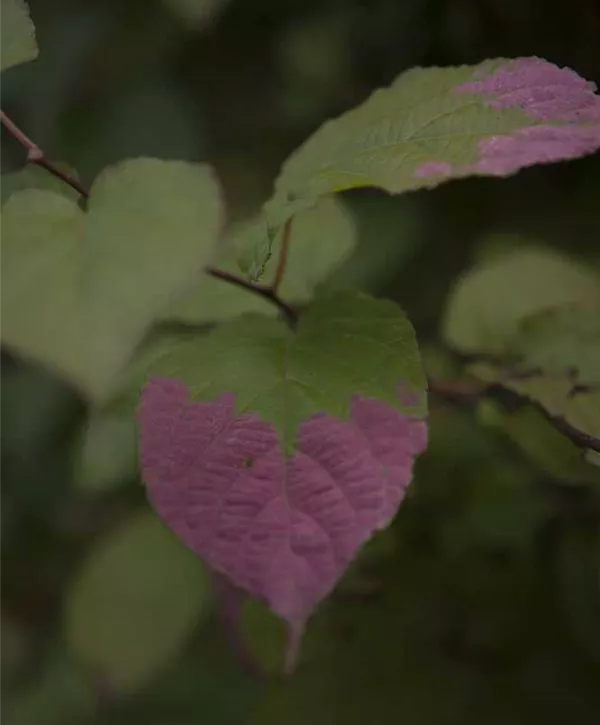 Actinidia kolomikta wächst kletternd und erreicht gewöhnlich eine Höhe von 4 - 6 m und wird bis zu 2 - 3 m breit.