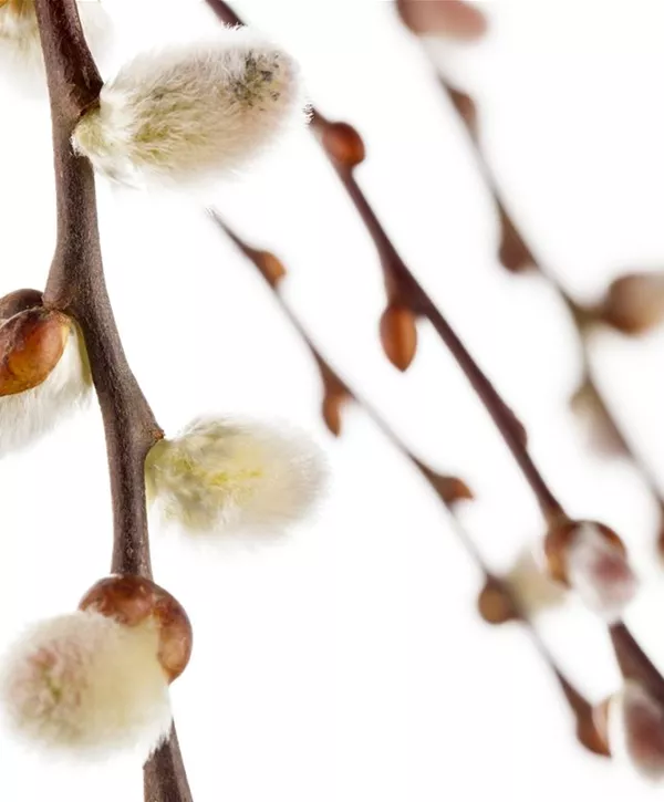 Die Hängende Kätzchenweide 'Pendula' bildet gelbe oder silbrige, duftende Blüten von März bis April.