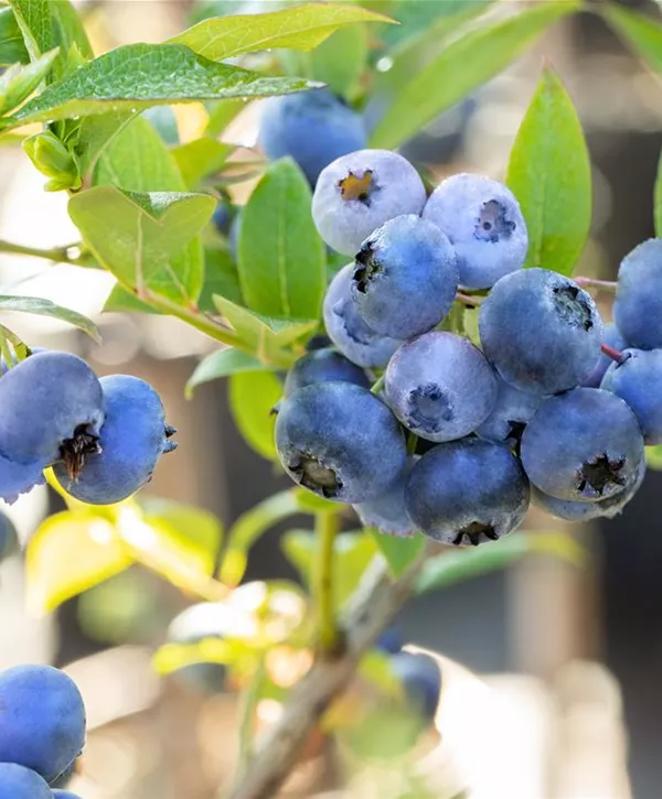 Diese Früchtchen sind nicht zu übersehen, denn die Heidelbeere 'Bluecrop' besitzt große, dunkelblaue Früchte. Das Fruchtfleisch ist fest und macht die Beere haltbar. Der Geschmack ist süßsäuerlich und sehr aromatisch. 'Bluecrop' beschert Ihnen vier Wochen reiche Ernte. Ein schwach saurer Boden ist für diese Heidelbeere ideal. Ältere Triebe sollten Sie regelmäßig entfernen, dann wachsen die Früchte umso intensiver nach. Heidelbeeren sind Flachwurzler und der Boden kann mit Rindenmulch bedeckt werden.