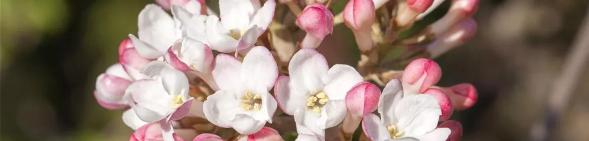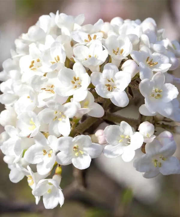 Der Wohlriechende Schneeball 'Aurora' bildet weiße, duftende Blüten von April bis Mai.