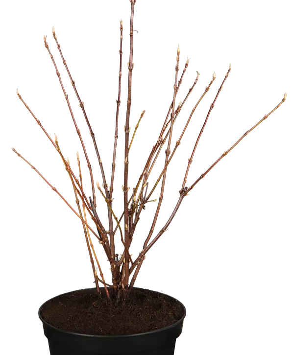 Die Triebe von Viburnum farreri 'Nanum' sind glatt, rot-braun.