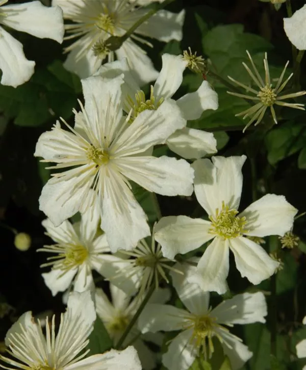 Die Immergrüne Waldrebe bildet weiße, stark duftende Blüten von März bis Mai.